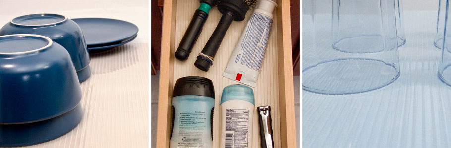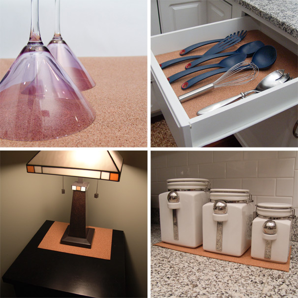 Use our premium cork material for areas like high traffic drawers, visible shelves, and shelves with delicate china and crystal.